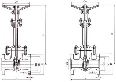 产品外形图及主要连接尺寸:DZ41H/W/Y国标低温闸阀