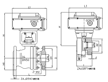 ZAJQ971超短型电动对夹式球阀外形尺寸: