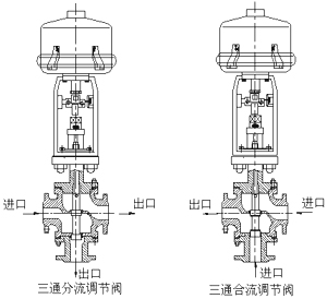 产品概述: ZRSF(H)型电子式电动三通调节阀是由3810L系列电子式电动执行机构和三通阀组成,电动执行机构内有伺服系统,无须另配伺服放大器,电子式控制单元被设计成匣子形式,并用树脂浇铸,驱动量反馈检测采用高性能导电塑料电位器,是具有1/250分辨能力的高可靠性产品,连线极为简单,只需配DC4~20mA或DC1~5V输入信号及220AC单相电源即可控制运转,调节阀有合流与分流两种作用方式,在某些场合可以代替两个二通阀和一个三通阀接管而得到广泛运用。