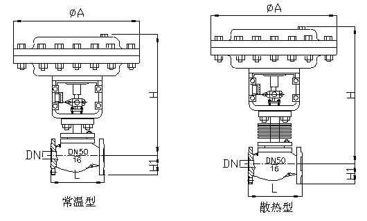阀体: 阀体形式:直通单座(套筒)倒S型铸造型阀 公称通径:DN20~300mm 公称压力:PN1.6 4.0 6.4MPa 连接形式:法兰式按JB78-59 JB/T79.2-94凹式 材 料:HT200 ZG230—450 ZG1Cr18Ni9Ti ZG0Cr18Ni12M02Ti 上 阀 盖:常温型-20~+200℃ 散热型-40~+450℃ 填 料: V型聚四氟乙烯、柔性石墨、不锈钢波纹管 阀内组件: 阀芯型式:上导单座(套筒)柱塞型阀芯 流量特性:直线特性、等百分比特性或快开特性 材 料:1Cr18Ni9Ti 0Cr18Ni12Mo2Ti