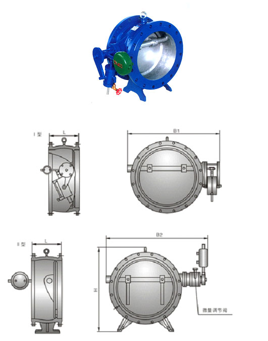 本厂生产的H47X、H47H、HH47X、HH47H、H47XF、HDH47X型蝶式缓冲止回阀,主要用于工业供排水、污水处理厂的水泵出口处,防止管网中介质逆流。自动消除破坏性水锤,从而保证水泵和管路不受损坏。该阀主要由阀体、阀瓣、缓冲装置和微量调节阀组成。该产品具有结构新颖、体积小、流体阻力小、运行平稳、密封可靠、耐冲刷、耐磨损、缓冲性能好等特点,是工业用水和城市排污的最佳产品。 |