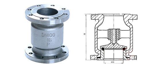 产品概述: H42H/W立式止回阀正常处于关闭状态,由于管线中进口端介质的压力作用,而克服弹簧阻力使阀门开启。当进口端介质压力低于出口端时,弹簧将阀芯推向阀座而使阀门关闭,阻止介质逆流,故起止回作用。 本阀门由于采用弹簧支撑阀芯,故采用立式安装或卧式装均可。